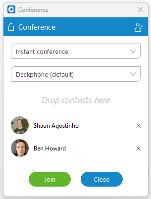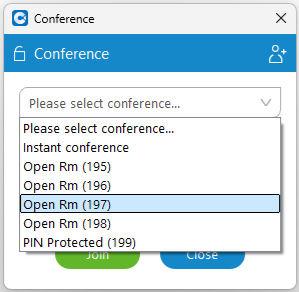 - Select an existing conference from the drop down menu, or select Instant conference.