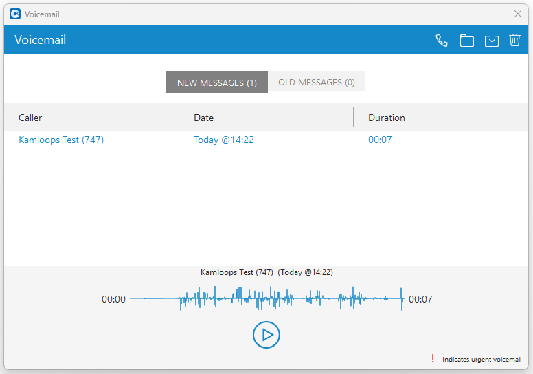 Right-click on a message to save it to old messages folder, delete it, or call the person back.