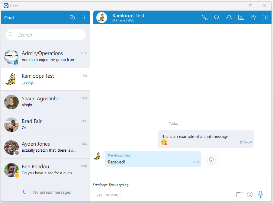 Chat is an instant messaging platform for all desktop, mobile and web users. All chat messages are stored on the TOC server and synced across all your TOC applications. Chat is fully encrypted from end-to-end.