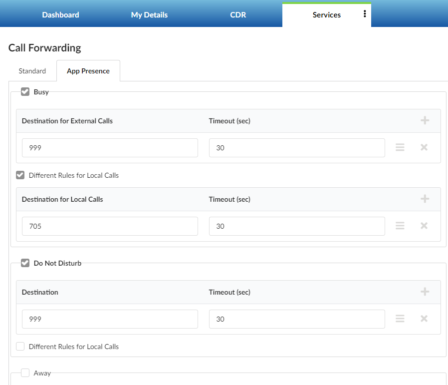 - Click on the + button beside each Destination / Timeout line to add a new destination.