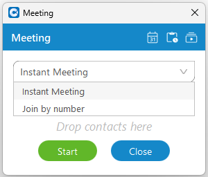 Click on the Meeting icon to bring up the Meeting window. Choose between creating an instant meeting or joining a meeting in progress.
