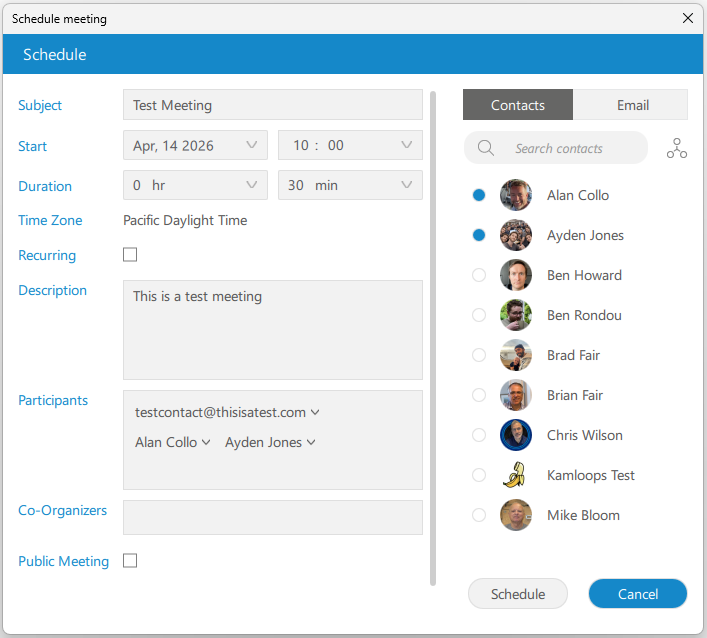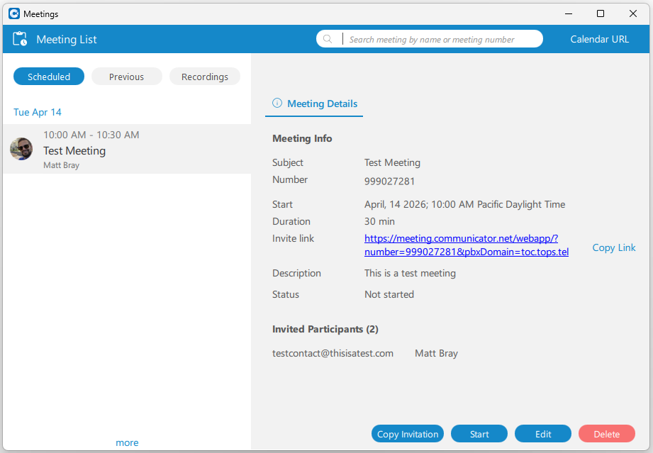 When you click schedule, an invitation email and calendar reminder will be sent to all participants including yourself. The invitation includes instructions for external users to join.