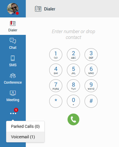 To view your messages, click on the ellipsis below Meeting, and select Voicemail.